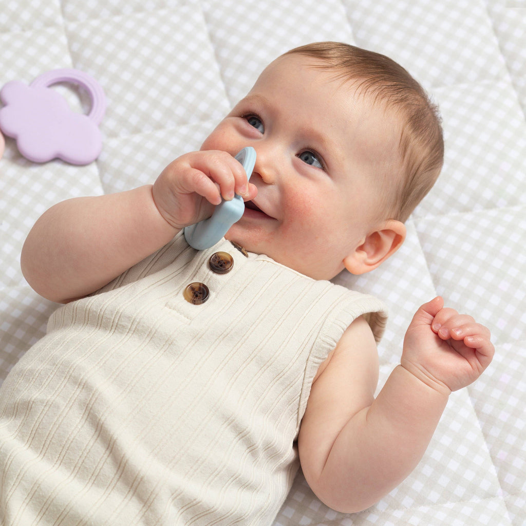 Keep inquisitive little hands and mouths occupied with this multi-textured silicone teether set. The unique designs allows for safe, sensory exploration and is made from BPA-free, food-grade silicone which means your little one can soothe their sore gums safely.