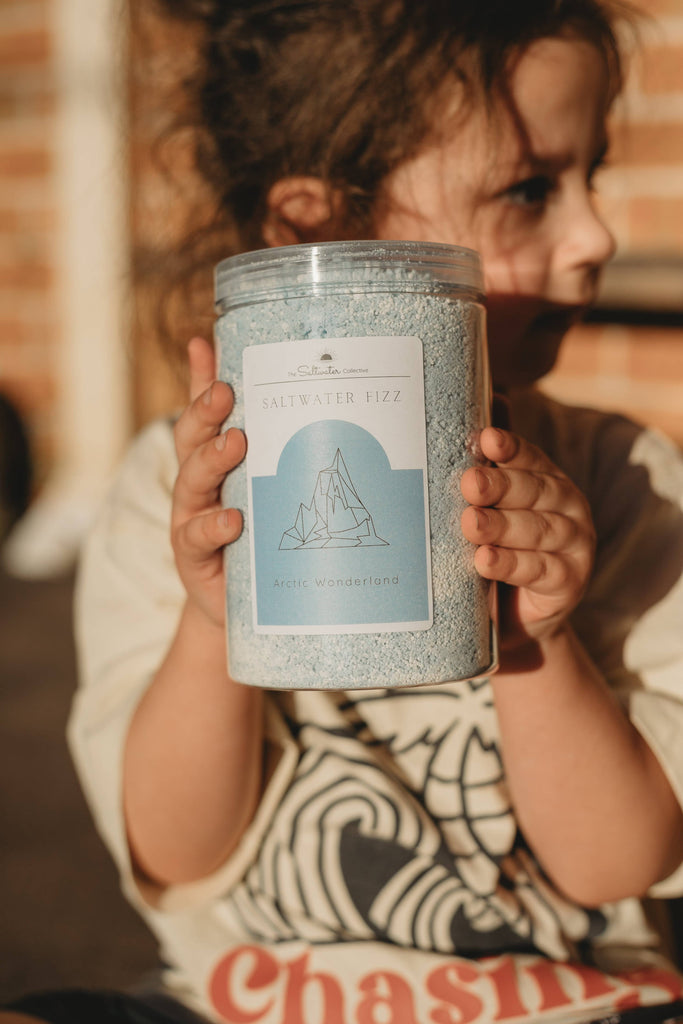 Arctic Wonderland Saltwater Fizz 800g Scented with Essential Oils A calming, arctic blue foam and white fizz for potion play Just add water! ______ There is something so magical about adding little bits and pieces to a bowl, gems, flowers and glitter, sprinkling in some magic fizzy dust, making a secret wish and adding that special ingredient... water. Watching the delight on your child's face as their potion activates is such a special moment. When they are finished making their potion, bottle it up to keep and their wish will stay with them forever. How To Play Just add water!! That’s it! Fizz is the most wonderful sensory experience.