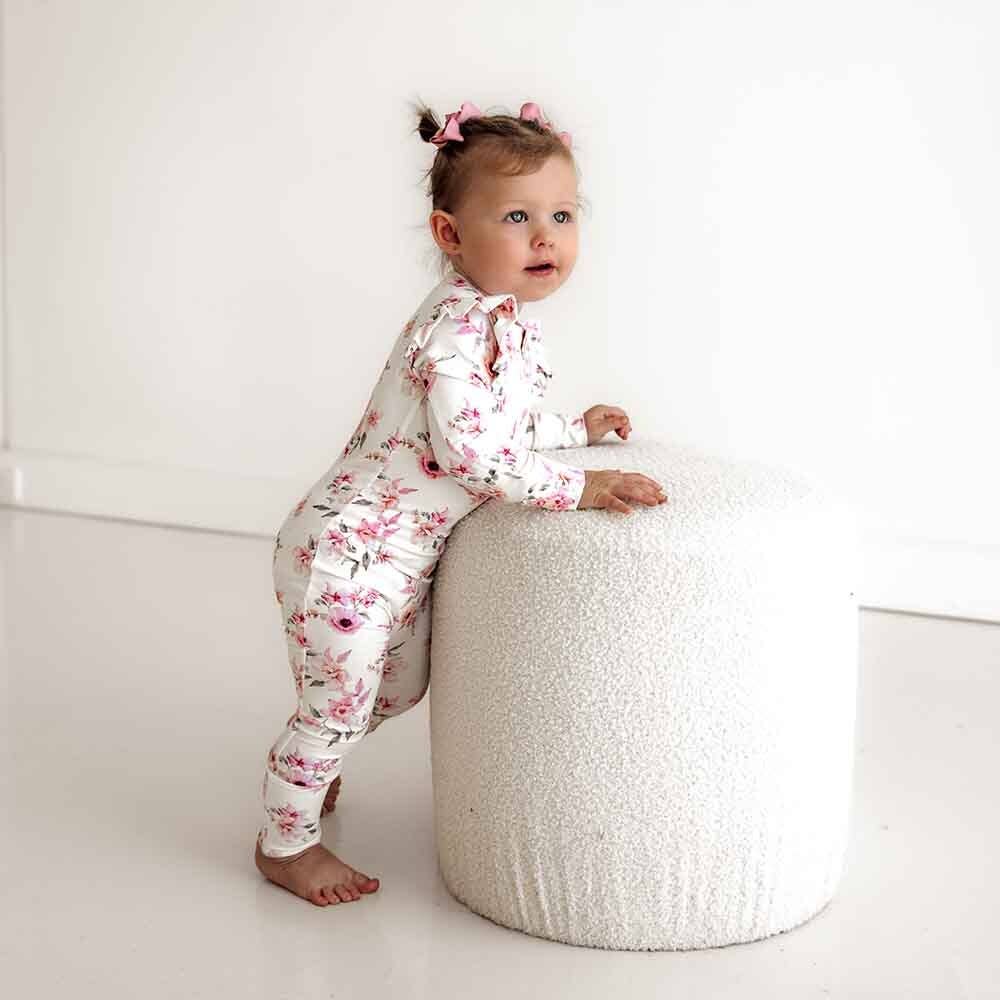 This design includes a long, hidden zipper from ankle to ankle, inside the leg. This means bub’s body can stay warm while their nappy is being changed, with simple, easy access. It also means these growsuits are as easy as a T Shirt to put on bub!