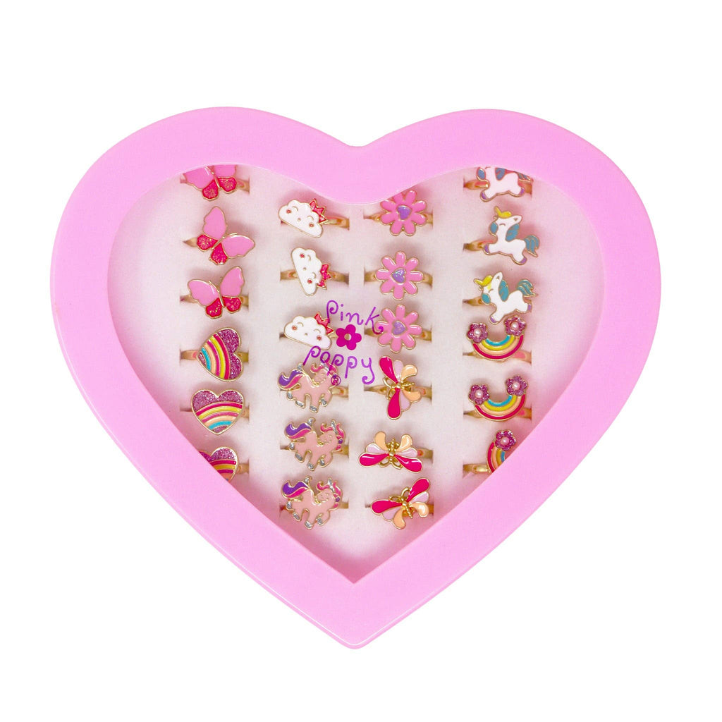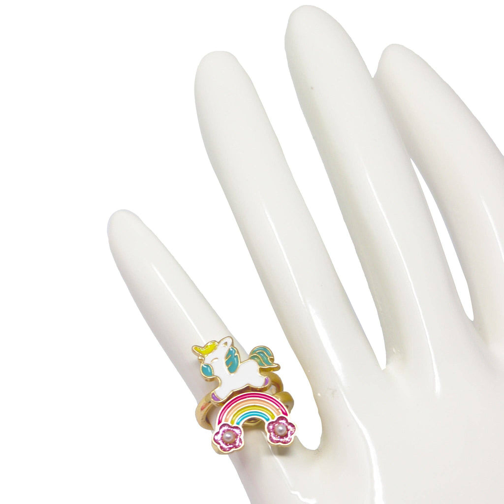 Add a magical touch to your fingers with Pink Poppy's Fidget Sparkle Fashion Rings. These adorable charms spin to help ease anxiety, making them not just stylish accessories, but functional aids. These gold rings are adjustable in size, so one size fits most, with coloured enamel motifs.