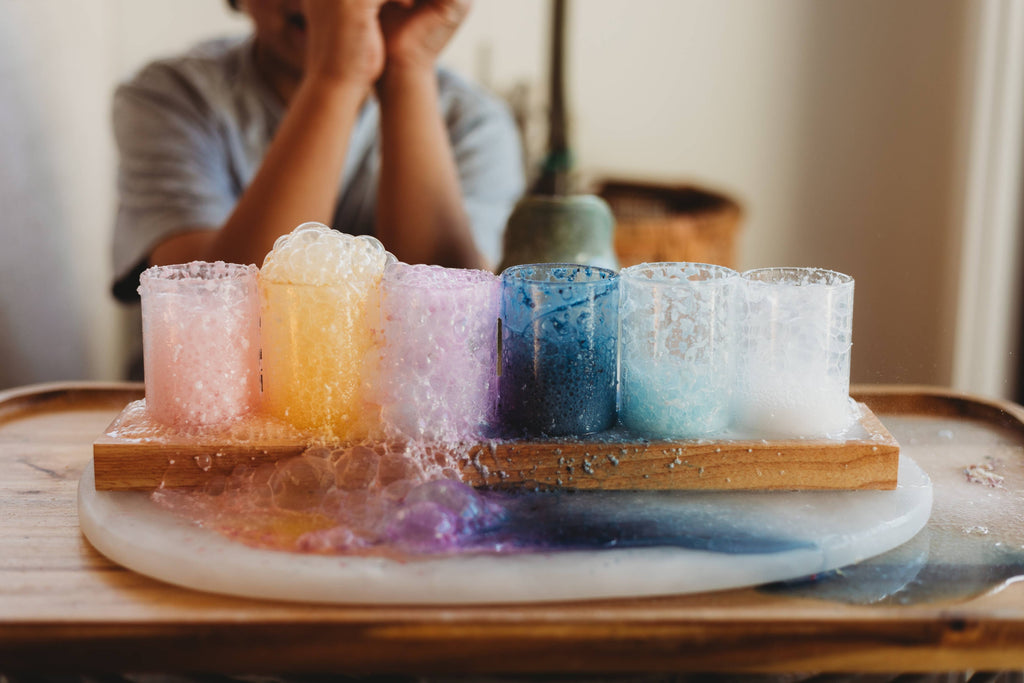There is something so magical about adding little bits and pieces to a bowl, gems, flowers and glitter, sprinkling in some magic fizzy dust, making a secret wish and adding that special ingredient... water.