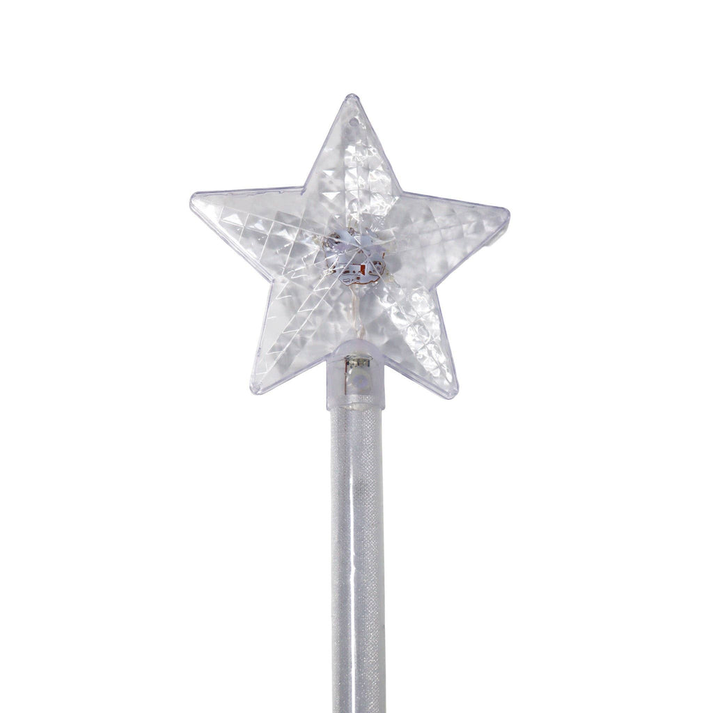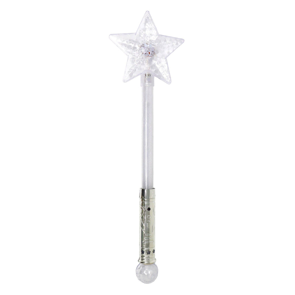 Bring your fantasies to life with Pink Poppy's Magical star light-up wand. This wand is decorated with a shiny silver coloured handle with rainbow LED lights inside. This fun accessory features three light functions: Strobe, Flash, and Fast Colour Change. To activate, remove the isolation tab & press the button on the handle. This wand is the perfect gift to introduce some magic into playtime!
