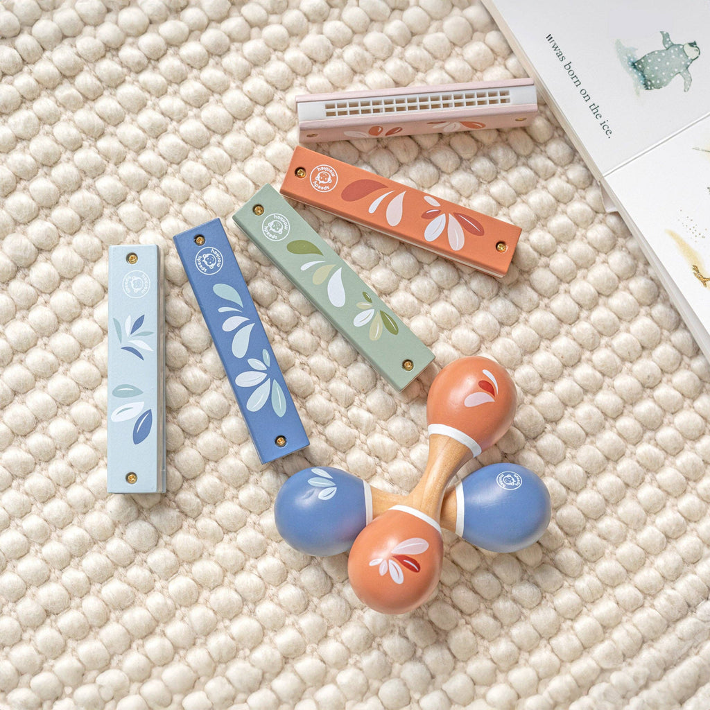Beautifully crafted, these maracas are perfect for tiny hands and big rhythms. Whether they're creating their first band or shaking things up solo, our maraca promises musical merriment. This toy is crafted from sustainably sourced wood from FSC® certified forests and coated with non toxic, child-safe paint.