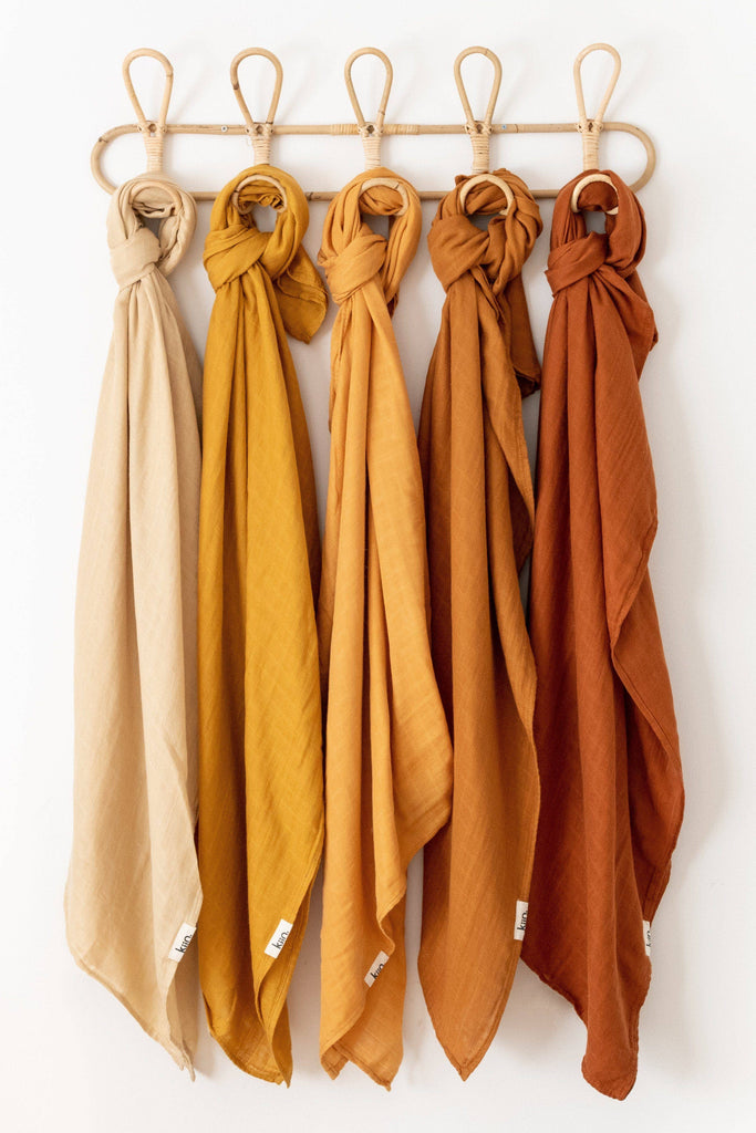 Kiin swaddles are made from the softest organic cotton + bamboo blend. The premium muslin fabric is lightweight & breathable, and incredibly soft and gentle on baby's skin; perfect for swaddling your little ones.
