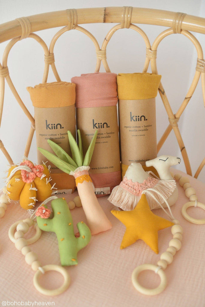 Kiin swaddles are made from the softest organic cotton + bamboo blend. The premium muslin fabric is lightweight & breathable, and incredibly soft and gentle on baby's skin; perfect for swaddling your little ones.