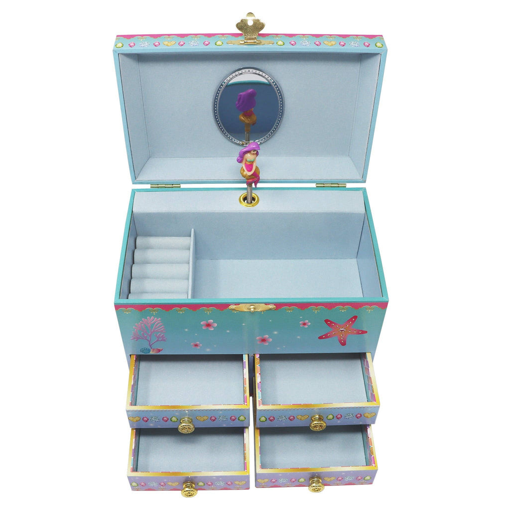 Pink Poppy's limited-edition Shimmering Mermaid Medium Musical Jewellery Box is a gorgeous keepsake for little ones covered in illustrations of an underwater oasis.
