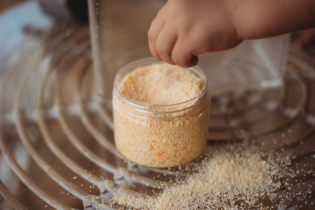 Fizz is the most wonderful sensory experience. When you drop it in a bowl of water it will explode into bubbles, or you can slowly add spoons of water for a longer fizzy play.