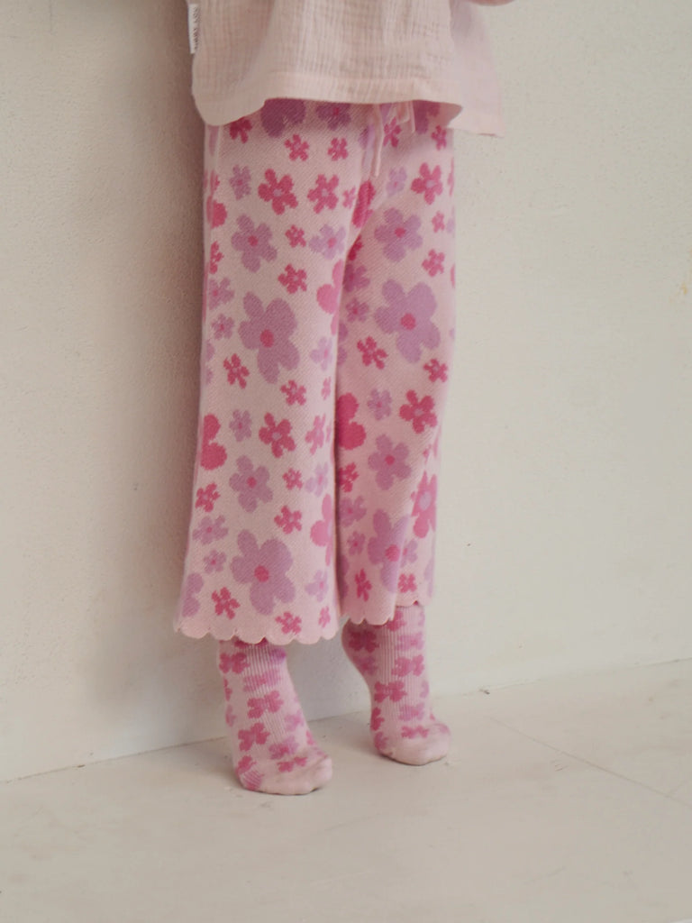 Knitted pants featuring our Cora floral design, cropped length, functional drawstring and elastic waist for the perfect fit. Mix and match with pieces available in our Cora Collection.