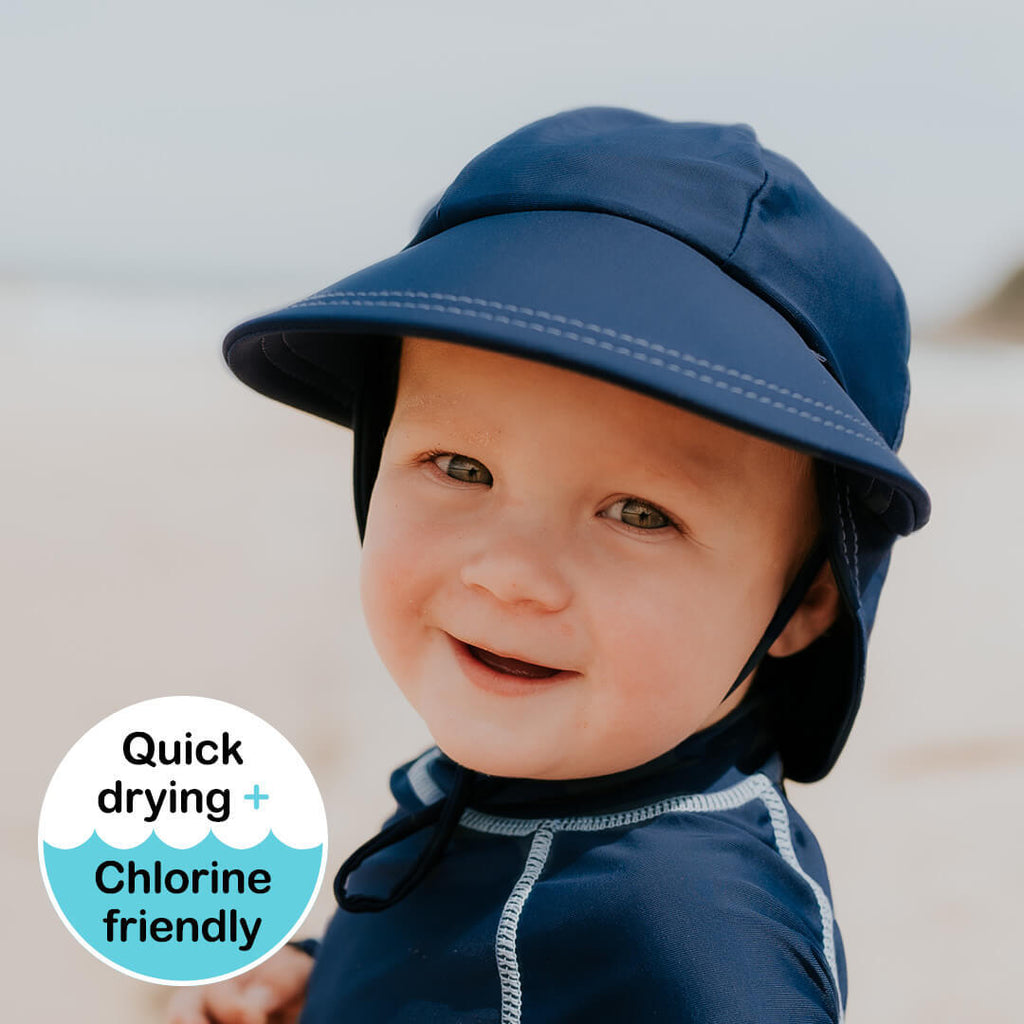 The Legionnaire hat is built for comfort - so much that kids forget they're wearing it! This makes it the best style for hat-haters and babies to wear while in prams and baby carriers. Made with super-stretchy and lightweight cotton jersey for a perfect fit keeping your little ones head cool under the hot Australian conditions & rated UPF50+ excellent protection.