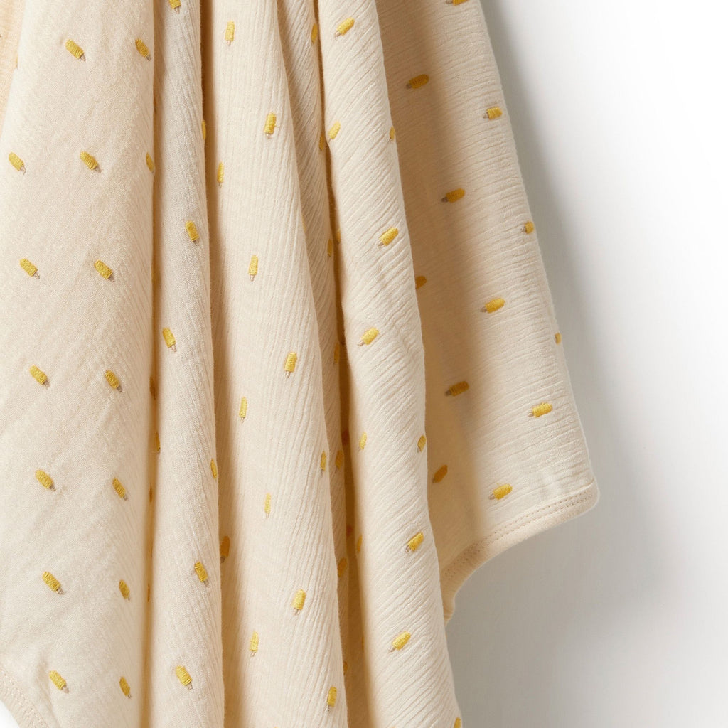 This organic cotton bunny rug from Wilson and Frenchy is both lightweight and breezy - perfect for swaddling. Made with soft washed fabric, it features an all-over embroidery and bound edges. Snuggle up with this versatile and eco-friendly must-have.