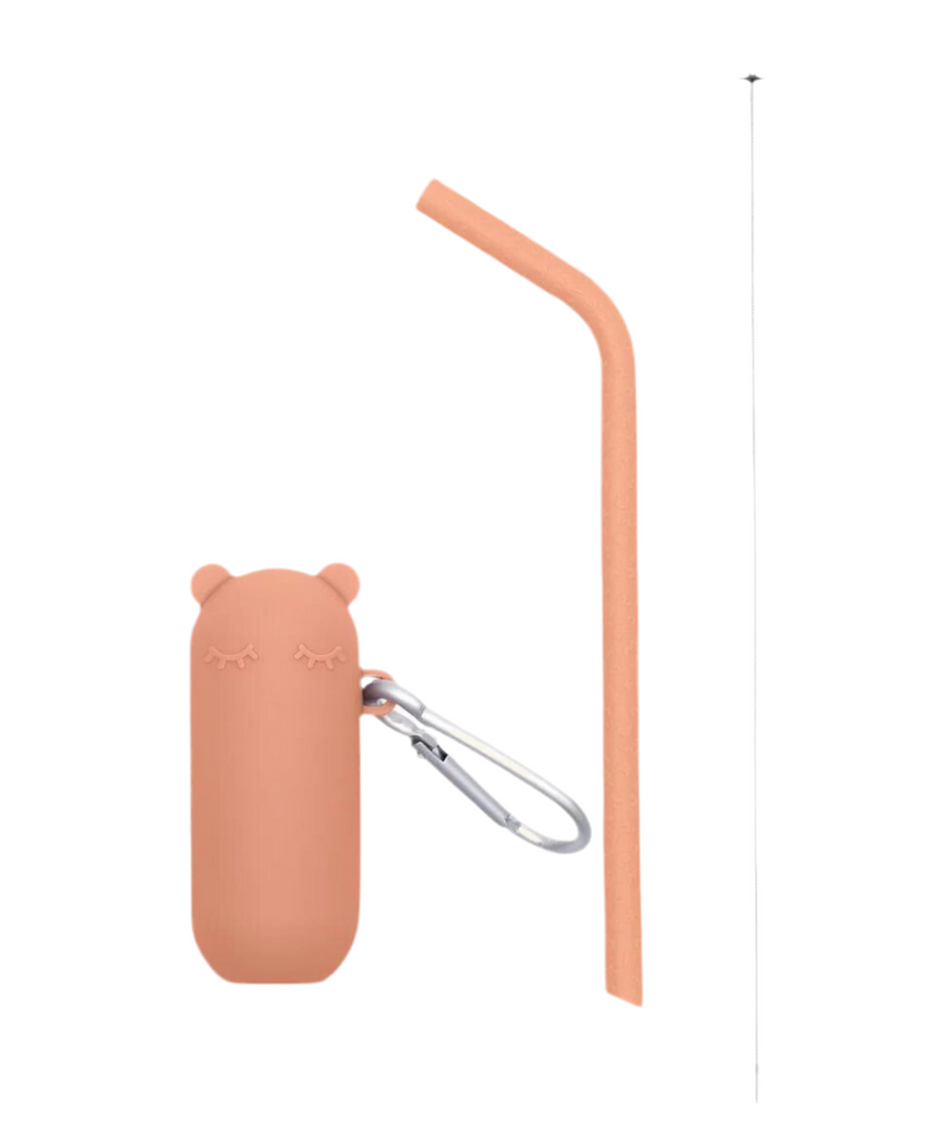 Each practical Keepie set comes with one We Might Be Tiny silicone Bendie Straw, a bendable straw cleaner and a practical silicone travel case with aluminium carabiner so you have all the bits and bobs in one spot.