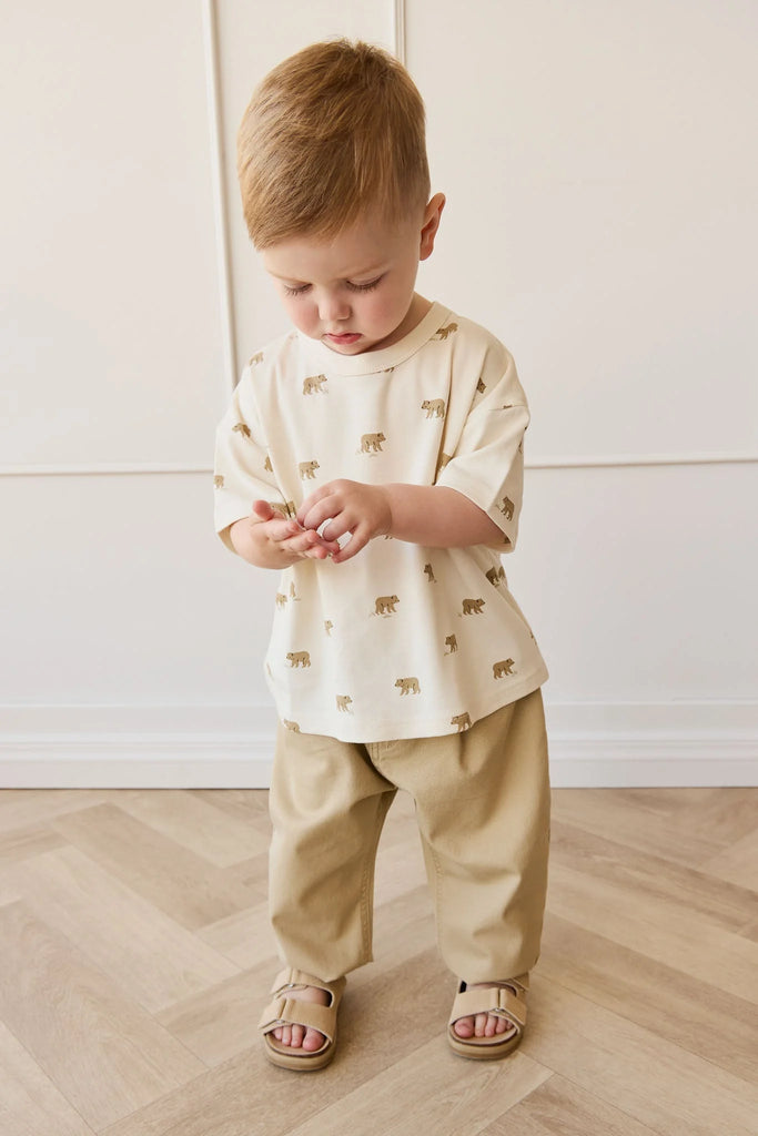 The Rueben Pant in Stucco is a beautifully classic piece for your little one’s wardrobe. With a relaxed fit, elastic waistband with button closure, and soft stretch, these pants are finished in a warm, earthy stucco tone – perfect for everyday wear and seasonal layering.