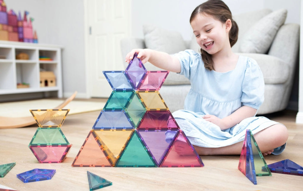 Discover a new world of shapes, design and STEAM learning with the 36 Piece Rainbow Shape Expansion Pack. Featuring our vibrant rainbow colours, this pack introduces large equilateral triangles, right-angle triangles, quarter circles, pentagons, trapezoids, and rhombis to your Connetix play!