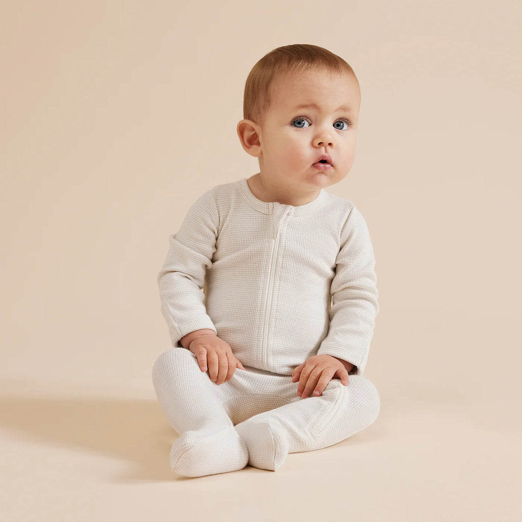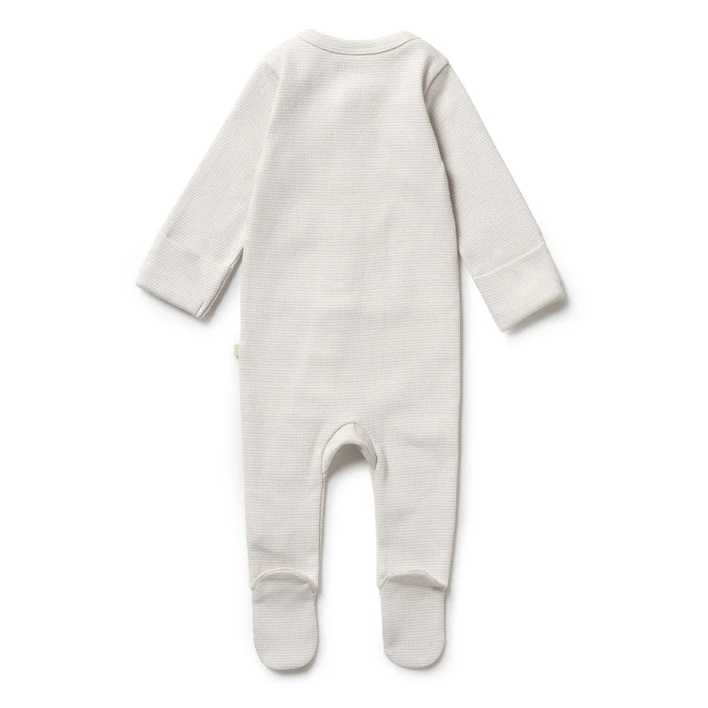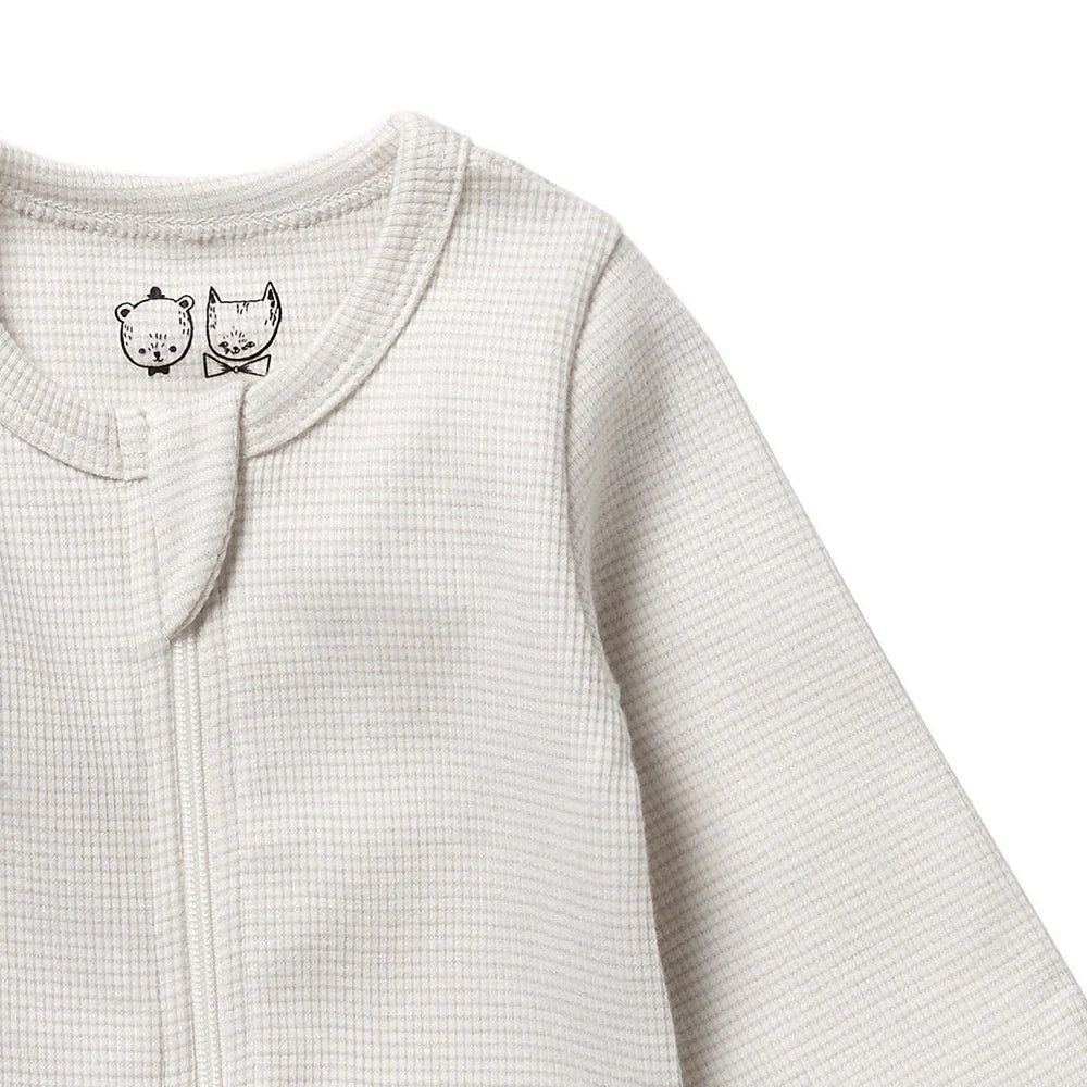 Keep your newborn comfy and cosy with this practical yet adorable zipsuit from Wilson and Frenchy. The design features a fold over mitten (sizes newborn to 000) to protect baby's face from little fingernails, and the option of a fold over foot for growing bodies.