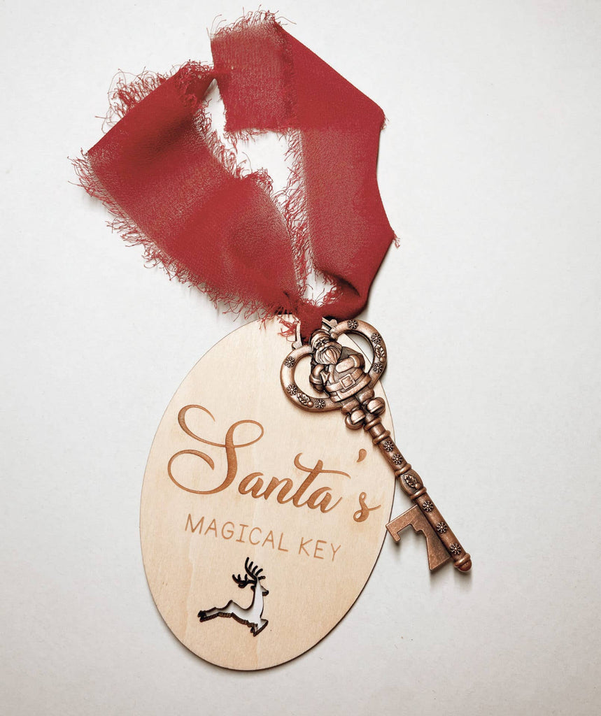 Our Santa's Vintage Magical Key is a fun way to celebrate Christmas with your little ones.  Create fun and imagination on this special holiday. Each key is made of 3mm plywood and is 8cm width x 15cm height and comes with an antique metal key. Each piece is unique as wood is a natural product and no two pieces are ever the same so your name plaque will likely look slightly different to the one photographed here. By placing your order, you understand that colors and wood grain vary from monitor/screen to in-person. You acknowledge that handmade products may differ ever so slightly from the photos on the website.