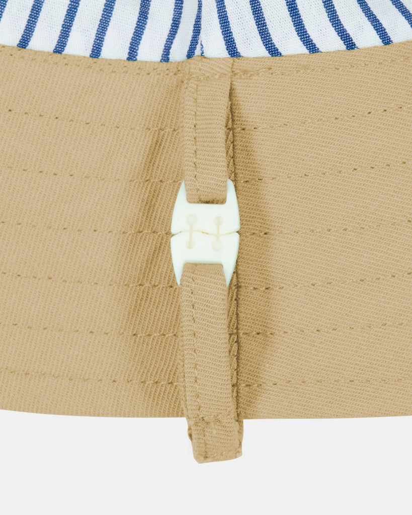 Toshi presents the classic Bucket Hat Billy, ideal for children of all ages. The Toshi bucket has a well-structured brim. The UPF 50+ UV rating indicates optimal sun protection. The chinstrap with soft cotton toggle secures the hat for ease of wear. A security release clasp on the chin tie is designed to enhance wearer safety. The classic Toshi bucket hat is crafted from the finest quality 100% cotton and is fully lined for additional comfort.