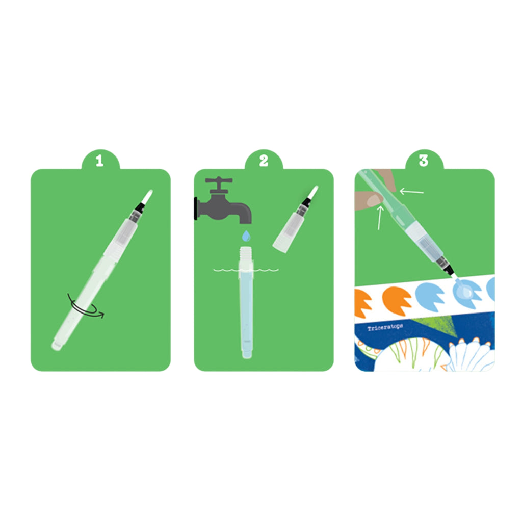 - Includes 16 pages each with unique illustration to paint, 6x paint pigments per page, 1x magic water brush, 1x sponge tool